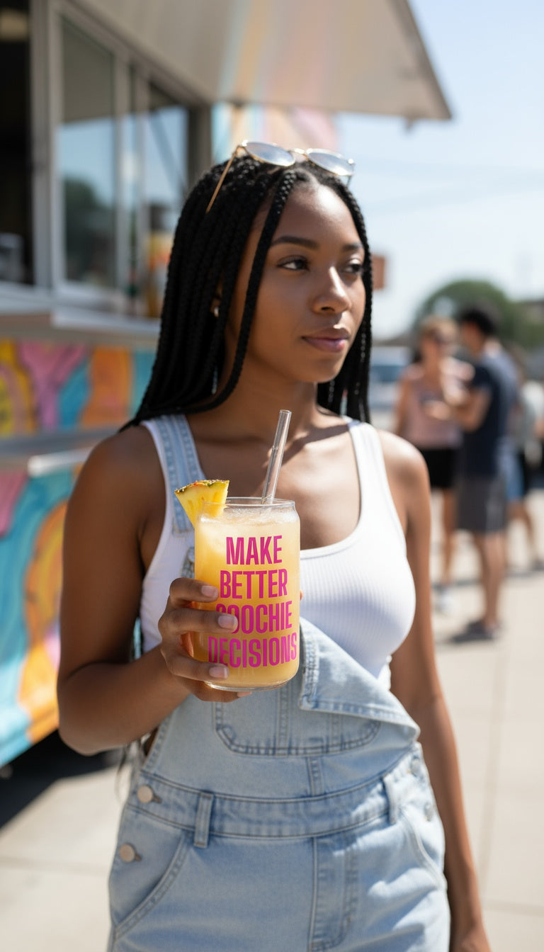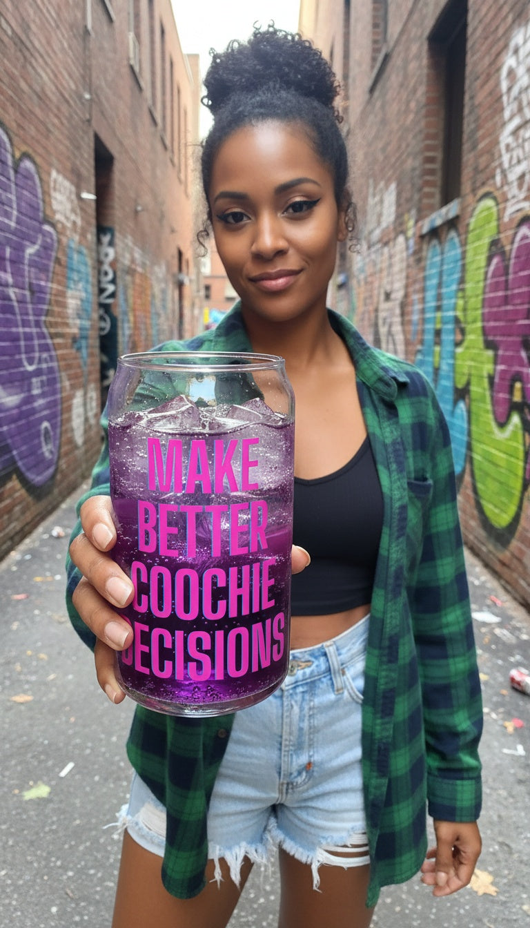 Introducing the "Make Better Coochie Decisions" Glass – now with a lid! This 16-ounce glass is perfect for making a bold statement at any event or as a personal daily reminder. With its sleek design, sturdy construction, and practical lid, it’s ideal for sipping on the go. Enjoy your favorite beverages while embracing better choices with a touch of humor and truth. Perfect for parties, gatherings, or just everyday use, this glass elevates your drinkware collection and sparks conversations. Cheers to making better decisions and unforgettable moments!