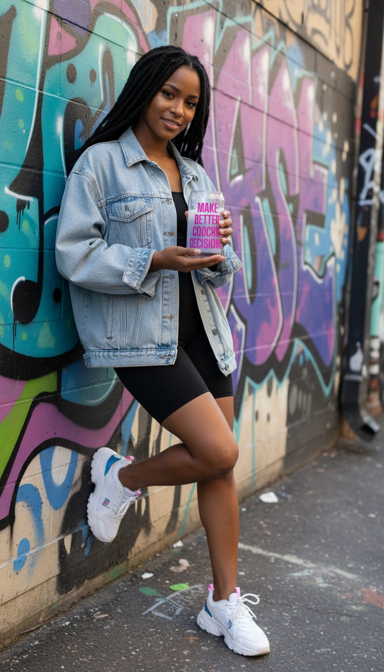 Whether it’s iced coffee or herbal tea, your morning deserves a little confidence boost. Grab your “Make Better Coochie Decisions” cup and sip like you own the day.